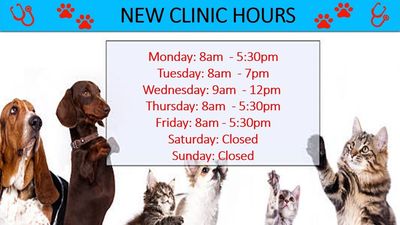 Wednesdays: 9:00 am - 12:00pm (Please note, no Veterinarian on duty)